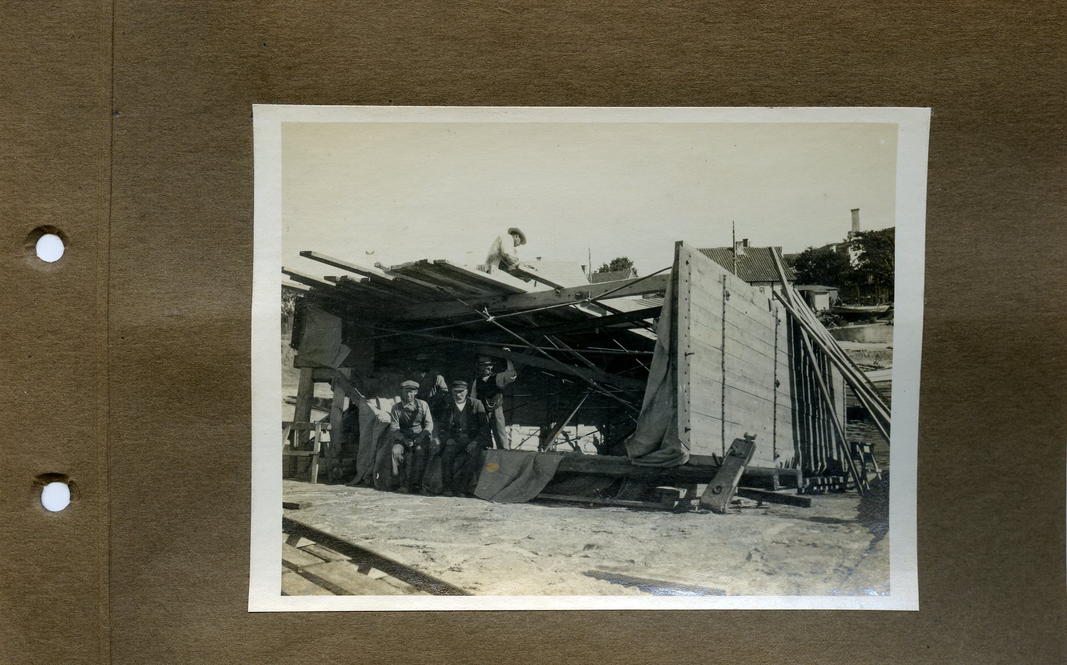 Fra venstre Otto Jensen, Line Dreier, Astrid Holm, Karl Holm med ryggen til, pigerne er Anna og Jenny Dich, forældrene Kr. og Anna Dich.